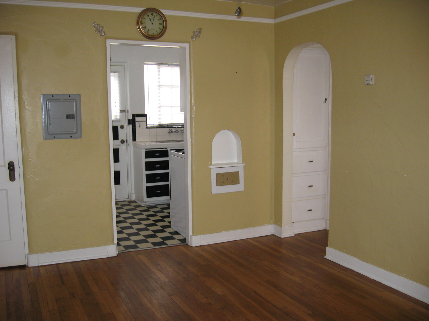 1 bedroom, 1 bathroom corner apartment with hardwood floors, shared courtyard and on-site coin laundry. $875 plus gas and electric. $800 security deposit. Cats OK for $25 per month.